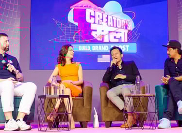 Panelists at #CreatorsMela 2024 hosted by US Embassy, Nepal. Panelists Film director/producer/actor Nischal Basnet; Miss Nepal/Architect/Media Personality Shrinkhala Khatiwada. Hosted by Chief of Public Affairs, Garrett Wilkerson.