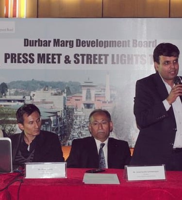 I joined Durbarmarg Development Board as a project partner and became project chief in 2014. As a project chief, my primary mission was to install solar street lights as this was about Nepal's reputation. Durbarmarg, a high end tourist street and face of the nation was under darkness with over 18 hours of load shedding. We went to all the concerned ministries, departments and city office for help however we only got promises for over 2 years. In 2014, we proposed government for a private-public partnership and the authorities gave permission to install solar street lights on our own cost while we were allowed to put an advertisement board to cover the installation and operation cost. This was the first solar street light in the nation and a great PPP initiative.