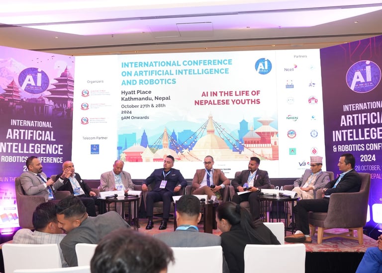 Keynote Speaker (27/10/2024) at an AI conference chaired by Secretary, Culture Tourism and Civil Aviation. Panelists 1: Director General, Civil Aviation Authority of Nepal, 2: CEO, Nepal Tourism Board, 3: VC NYEF, 4: Chairman Paila technologies. Hosted by Secretary, Robotics assocation of Nepal.